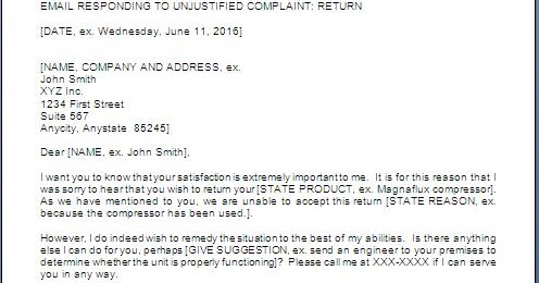 Use this sample complaint letter (.txt file) the next time you need to file a complaint. Let the customer know you understand his or her position or that you have given his or her complaint serious consideration. Find your complaint rejection letter template template, contract, form or document.